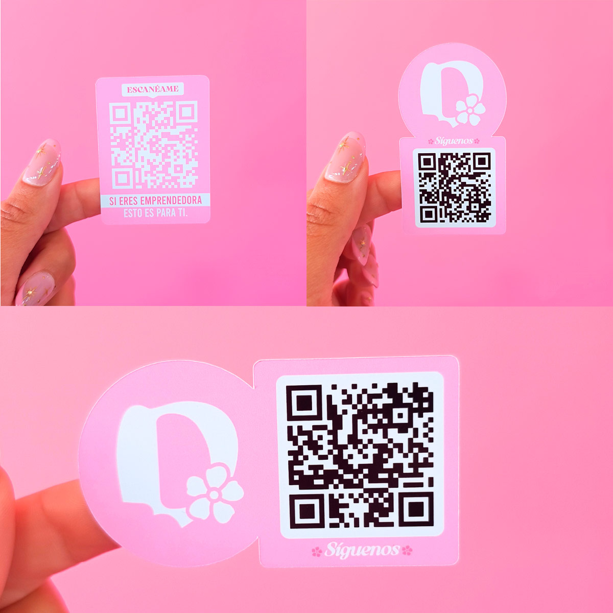 Los Sticker QR conectan el mundo físico con el digital de forma simple y profesional. Perfectos para emprendedoras que quieren redirigir a sus clientas a su Instagram, WhatsApp, sitio web o tienda online. Personalizados con tu marca y fáciles de usar. ¡Haz que encontrarte sea más rápido y estiloso!
